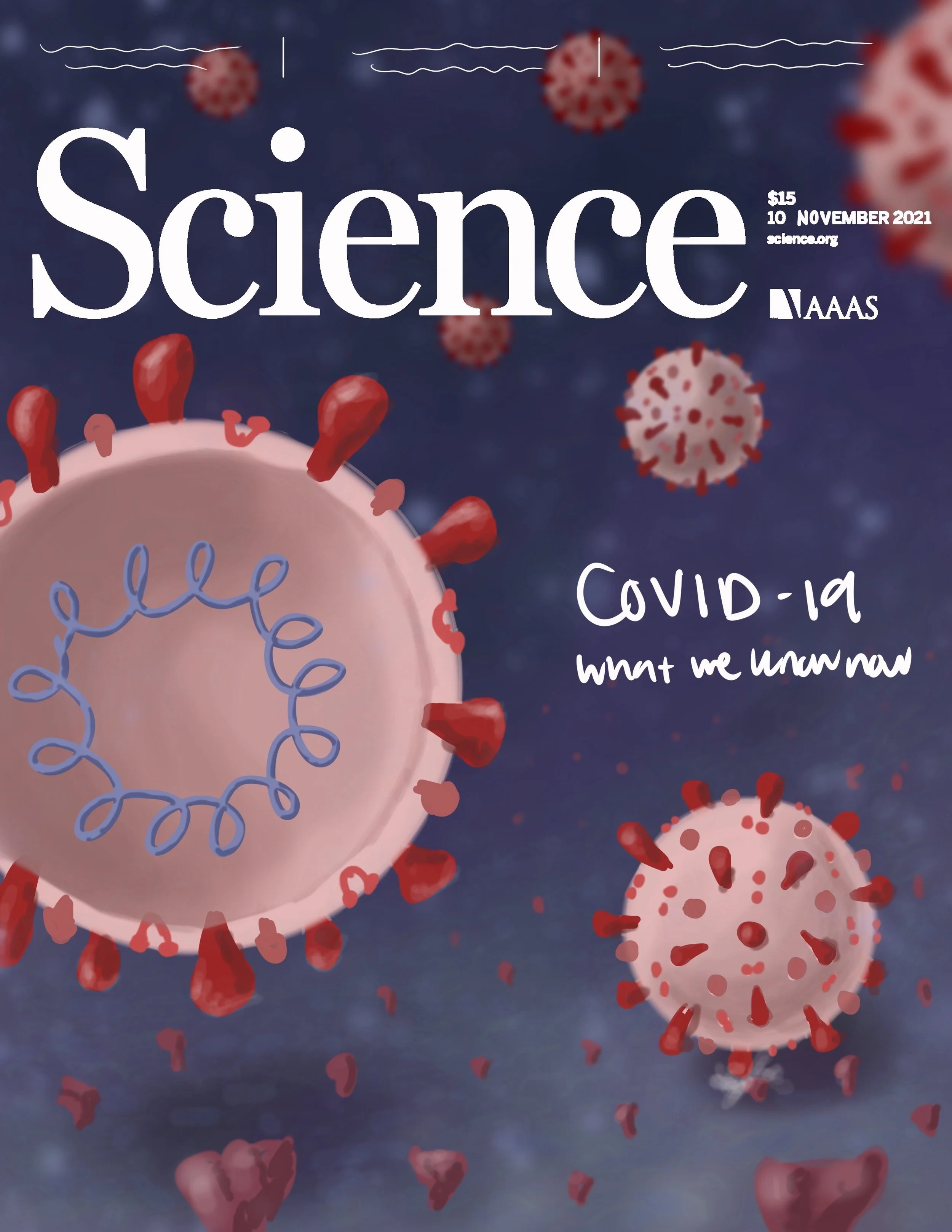 This illustration is a mock up design for an editorial journal cover on the novel coronavirus COVID-19. The journal cover will focus on the main article in the publication, which will be a review of what the scientific community knows thus far about the key proteins on the surface of the COVID-19 virus. The intended audience is a generalized audience who likely have some familiarity with or interest in science, but who are not themselves a member of the scientific and molecular research community. The objective of the cover illustration is to create a dynamic and compelling image that sparks interest in reading the journal to learn more about the functions of the COVID-19 proteins.